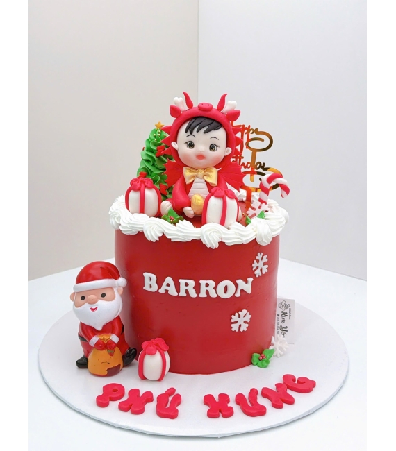 Bánh kem giáng sinh mừng sinh nhật bé trai thôi nôi