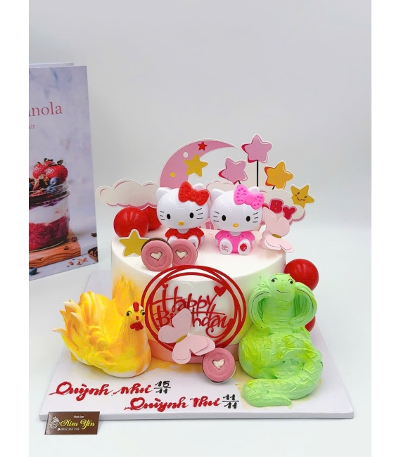 Bánh kem hello kitty màu hồng dành cho bé gái