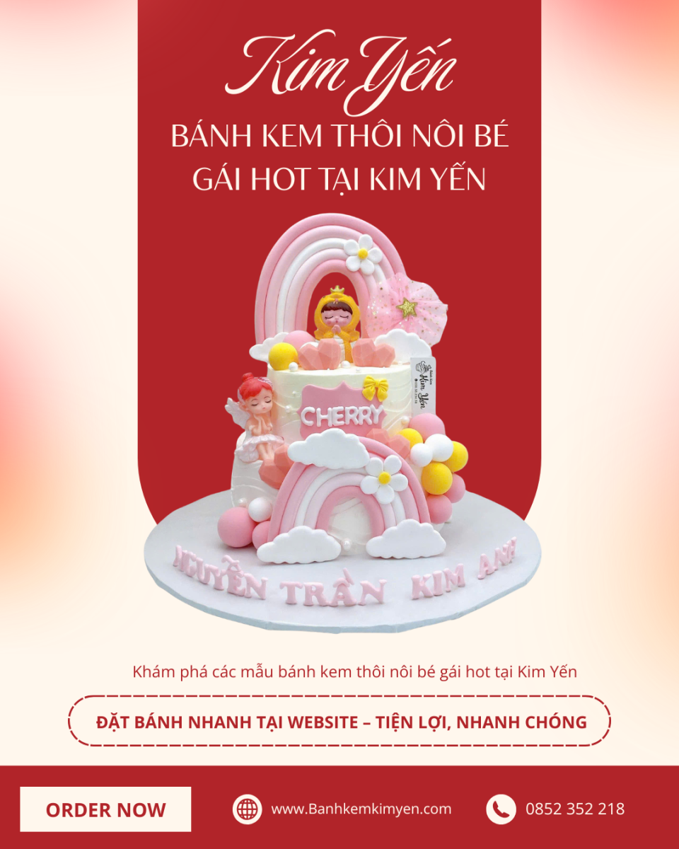 Bánh kem thôi nôi bé gái hot tại Kim Yến – Xu hướng bánh đẹp 2026