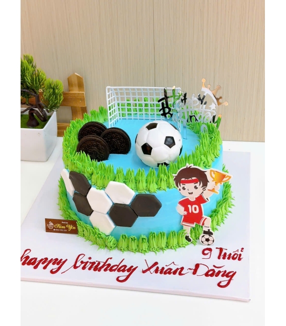 Với những bé trai yêu thể thao, đặc biệt là bóng đá, các mẫu bánh kem bóng đá cho bé trai 10 tuổi luôn là lựa chọn hàng đầu. Bánh được trang trí với sân cỏ, quả bóng, áo đấu hoặc logo đội bóng mà bé yêu thích.