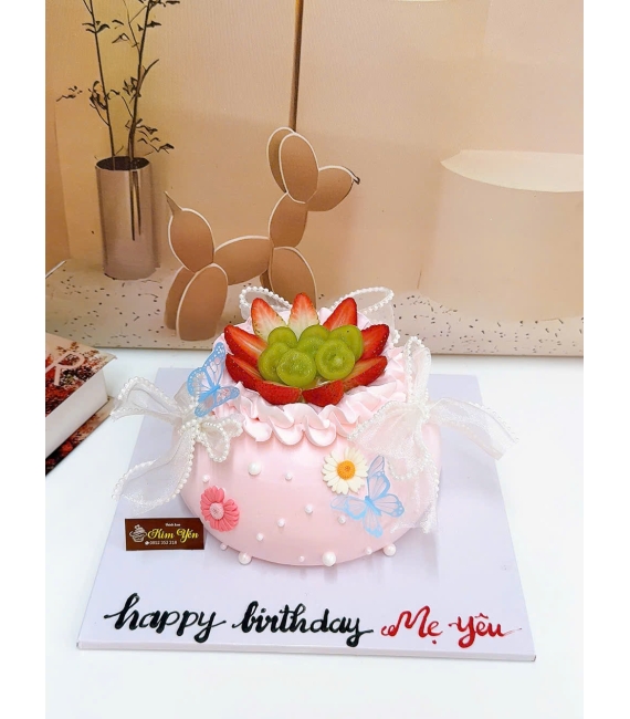Mẫu này được khách lựa chọn nhiều khi đặt bánh tặng mẹ, tặng người lớn tuổi hoặc người thích hương vị không quá ngọt. Thiết kế trang nhã với tông nhẹ, điểm xuyết trái cây tươi theo mùa giúp mẫu bánh phù hợp hầu hết dịp lễ như sinh nhật, tri ân hay gia đình sum họp.