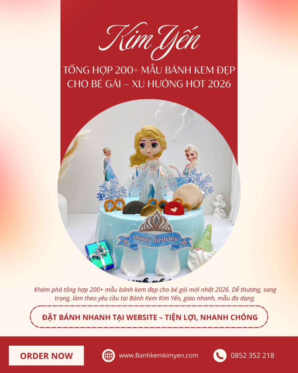 Sinh nhật là một trong những dịp đặc biệt nhất trong tuổi thơ của mỗi em bé. Đối với bé gái, chiếc bánh kem không chỉ là món quà mà còn là cả một thế giới cổ tích thu nhỏ với màu sắc, nhân vật và thiết kế đáng yêu. Chính vì vậy, việc lựa chọn bánh kem phù hợp luôn được các bậc phụ huynh đặc biệt quan tâm.