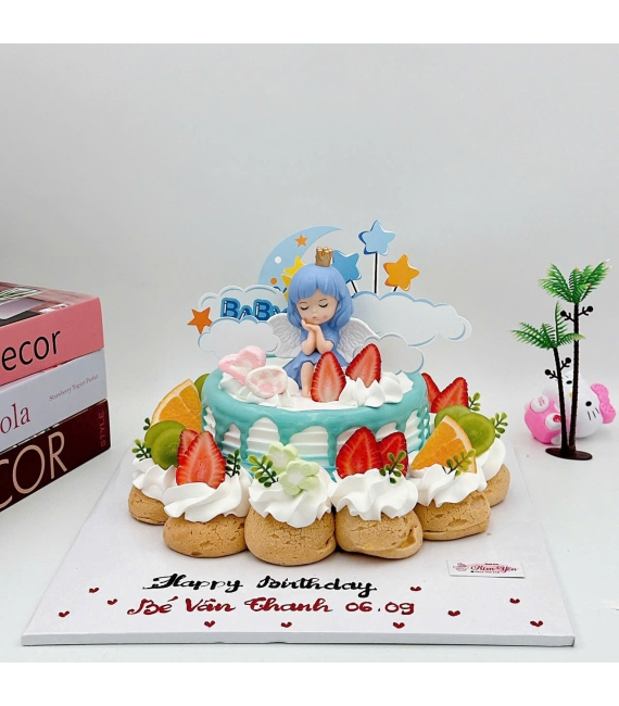 Đây là mẫu bánh kết hợp giữa hương vị kem tươi và các loại trái cây tự nhiên như dâu, kiwi, cam, nho. Bánh không chỉ đẹp mà còn bổ dưỡng, phù hợp cho các bé yêu thích vị ngọt thanh và trái cây tươi mát.