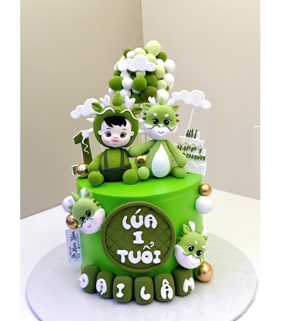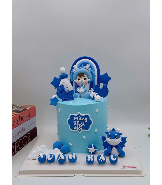2. Bánh kem thôi nôi chủ đề Rồng Xanh – mừng bé tuổi Thìn 2025